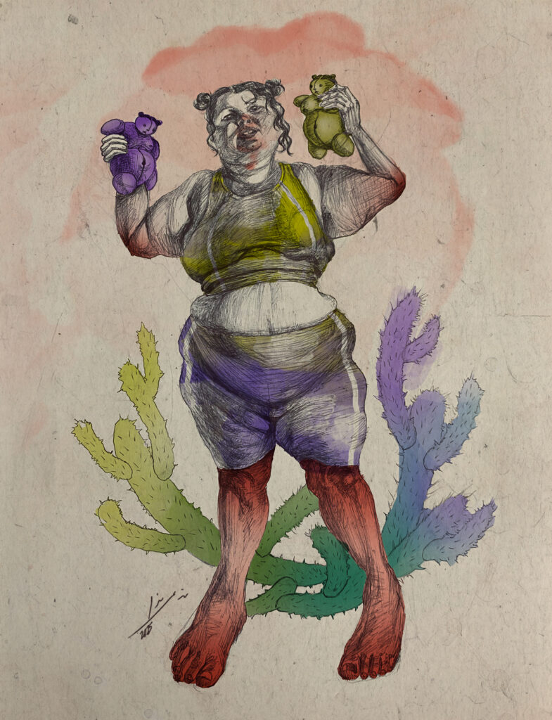في مساء يوم 13 مايو كان لي شرف حضور معرض مميز في قاعة Art Gallery بحي الزمالك الهادئ الراقي رفقة الصديق العزيز الدكتور فوزي نصار وهو من الأوفياء لعالم الفن التشكيلي. لم تكن زيارتي مجرد جولة فنية عابرة بل تجربة متكاملة كشفت لي عن أسماء فنية واعدة وعلى رأسها الفنانة ندى ندا التي تعرفت إليها عبر صديقي الشاب عمرو الملاح. وسط الزخم البصري في المعرض استوقفتني لوحتها بشكل خاص والتي يمكن أن أقترح لها عنوانا دالا هو …. طفولة متجذرة في الأشواك….. تصور اللوحة شخصية أنثوية ممتلئة واقفة في وضعية تجمع بين التحدي والاستعراض وتمسك في كل يد دمية ملونة واحدة بنفسجية والأخرى خضراء زيتونية. خلفية العمل لا تقل تعبيرا إذ تتداخل فيها أشكال نباتية تشبه الصبار مرسومة بألوان طيفية غير معتادة تمتد وتلتف حول الساقين العاريتين للشخصية ما يمنح العمل عمقا رمزيا وتأويليا غنيا. الفنانة هنا توظف مزيجا من الخطوط الدقيقة والتلوين الباهت القريب من الألوان المائية مع ميل لتشويه تشريحي محسوب يذكرني بأساليب التعبيرية لكن مع نكهة محلية تحاكي الجسد المصري المعاصر بما يحمله من توتر بين الثقل والانتماء وبين الطفولة والرغبة في التمرد عليها. دمى الطفولة لا تبدو هنا رموزا بريئة أو زخرفية بل تحمل دلالات داخلية متشابكة. فاللون البنفسجي الذي يمزج بين هدوء الأزرق وحرارة الأحمر يشير إلى العمق العاطفي وربما الألم المكبوت في حين يوحي اللون الأخضر الزيتوني بالارتباط بالأرض والنمو ولكن بلون متعب كأن النمو لم يكن سهلا أو طبيعيا. أما نباتات الصبار التي تنبع من الخلفية وتلامس الجسد فهي على الأرجح استعارة لحالة وجدانية عالقة وهي الطفولة التي لم تكن ناعمة والذكريات التي رغم ألمها ظلت جزءا لا يتجزأ من هوية الجسد والنفس. تلك الأشواك الملونة قد تمثل أيضا الطفولة المتنوعة التي تم تلوينها لاحقا بجهد شخصي كي تبدو جميلة لكنها لا تزال تحتفظ بحدتها الأصلية. ما لفت في أعمال ندى ندا الستة التي كانت معلقة على جدار أسعدني الحظ بوجود مقعدين أمامه فشغلتهما وصديقي الدكتور فوزي ما ساعدني على قراءة اللوحات بتمعن– وفي هذه اللوحة خصوصا – هو ذلك التوازن الدقيق بين الأسلوب والتعبير. فبين الخط اليدوي الحاد واللون السائل نجد انعكاسا لجسد يرسم من الداخل بقدر ما يرسم من الخارج. الجسد هنا ليس مرآة للجمال أو الشكل بل أرشيف عاطفي حي. وهو ما يجعل من العمل تجربة فنية بصرية وشعورية في آن واحد. عرض هذه اللوحة ضمن فعاليات معرض أقيم في Art Gallery في الزمالك يكشف عن انفتاح متزايد في المشهد التشكيلي المصري على أصوات نسائية تحمل رؤى جمالية وشخصية غير تقليدية. فندى ندا لا تطرح جسدا متمردا فقط بل هو جسد شاعري متجذر وصادق في تمثيله لذاته ولتجارب الأنوثة والطفولة من زاوية نادرة. لوحة طفولة متجذرة في الأشواك لا تكتفي بأن تعرض على الجدار بل تطلب من المشاهد أن يتورط معها عاطفيا. إنها دعوة لقراءة الجسد كبنية روحية تتشابك فيها الطفولة مع النضج والذاكرة مع الحاضر والبراءة مع الأشواك. ففي زمن يبحث فيه الفن عن خطاب بديل ومختلف تضعنا ندى ندا أمام عمل لا يهادن لكنه لا يصرخ ويوجع دون أن يؤلم ويكشف دون أن يفضح. إنها تقدم ببساطة فنا حقيقيا.
